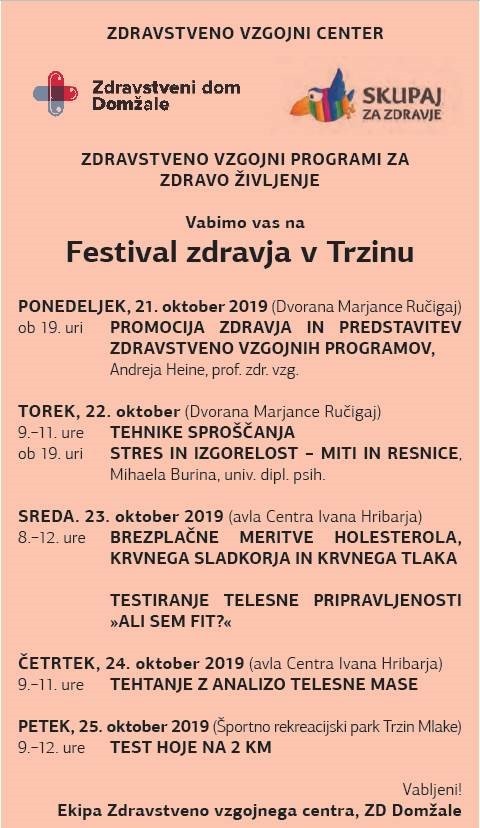 Festival zdravja v Trzinu od 21. 10. 2019 do 25. 10. 2019!