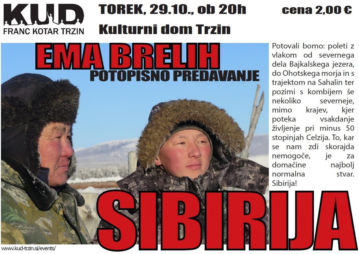 Potopisno predavanje: EMA BRELIH: SIBIRIJA, v torek, 29. oktobra 2019, ob 20 uri, v dvorani Kulturnega doma.