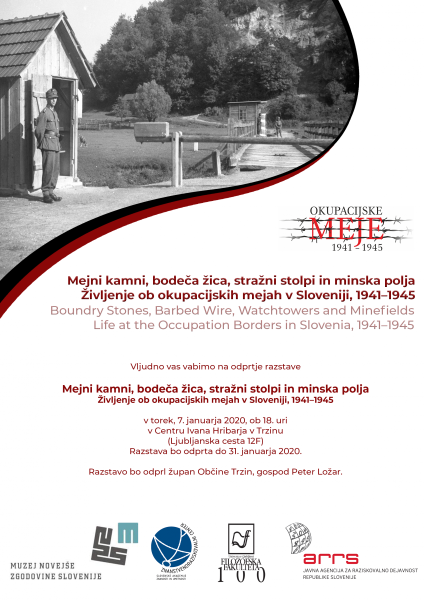 Vabljeni na odprtje razstave: Mejni kamni, bodeča žica, stražni stolpi in minska polja, Življenje ob okupacijskih mejah v Sloveniji, 1941-1945, v torek, 7. januarja 2020, ob 18. uri, v Centru Ivana Hribarja v Trzinu.