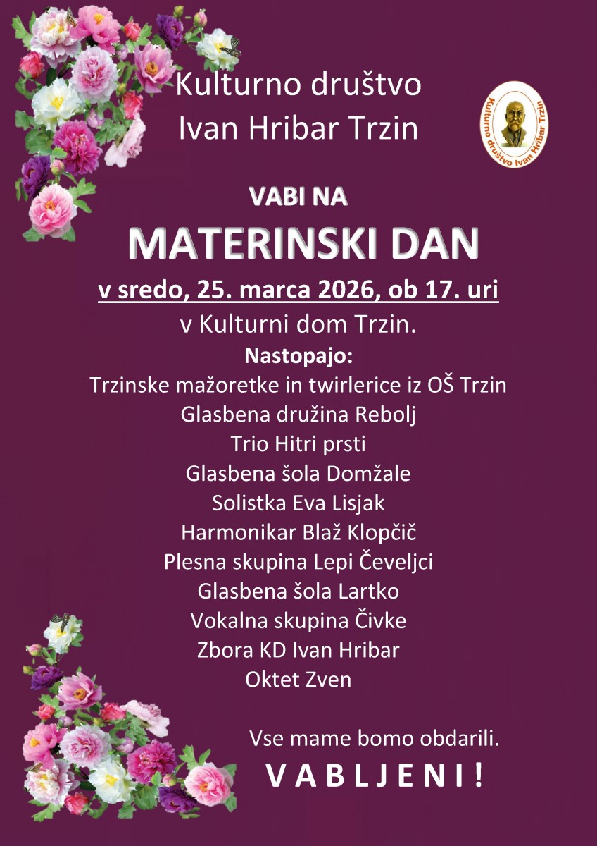 Društvo upokojencev Žerjavčki vabi na literarno jutro, ki bo potekalo v ponedeljek, 2. marca 2026, ob 10. uri, v dvorani Marjance Ručigaj. Predstavila se bo avtorica Anica Levstik s svojo knjigo NOCOJ JE GLAS HARMONIKE SPOMINE SPET PREDRAMIL.