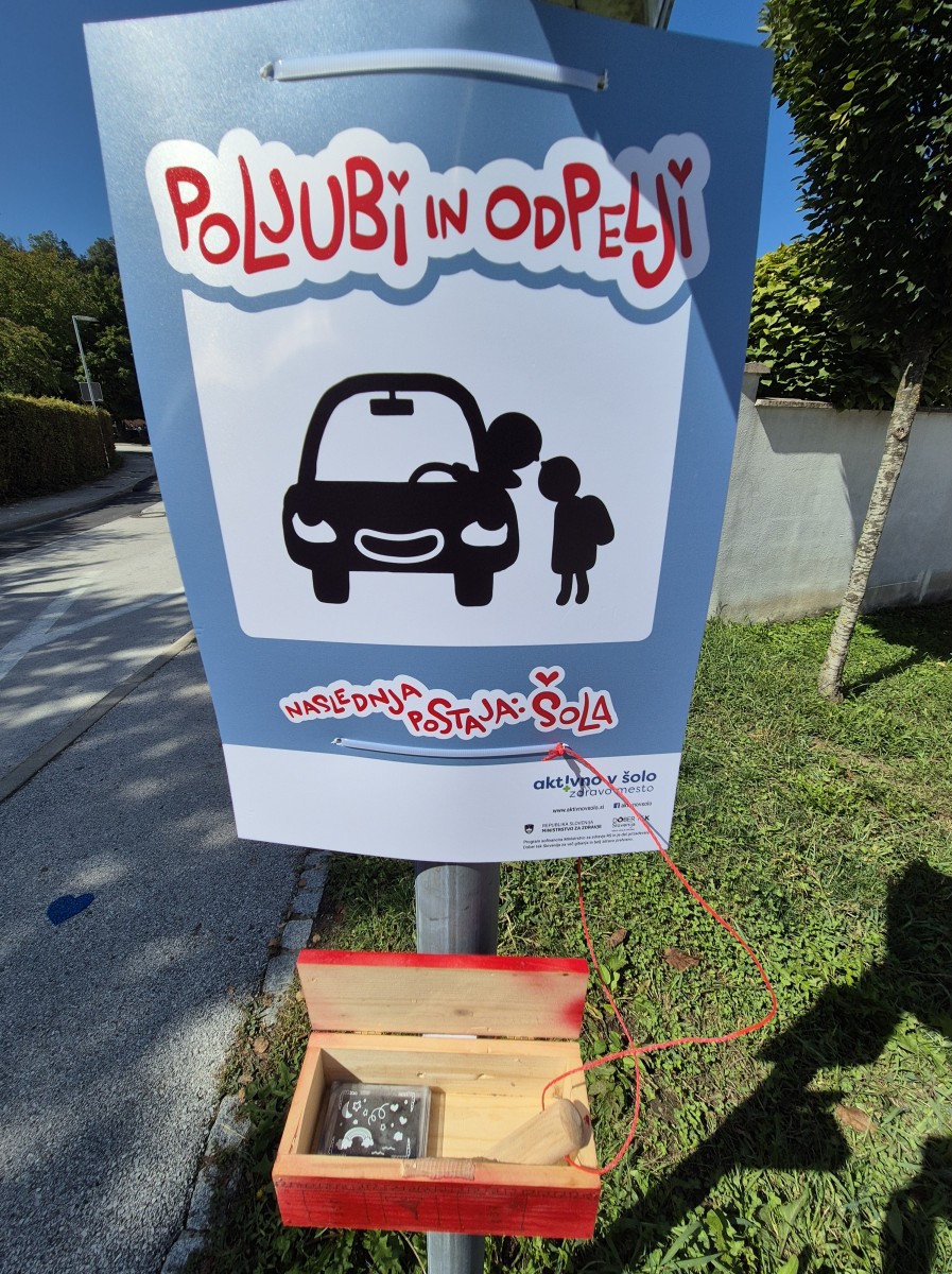 Poljubi in odpelji že čaka na šolarje in starše. V ponedeljek začnemo zbirati štampiljke. Poglejte v skrinjico pri tabli. #poljubiinodpelji #evropskitedenmobilnosti