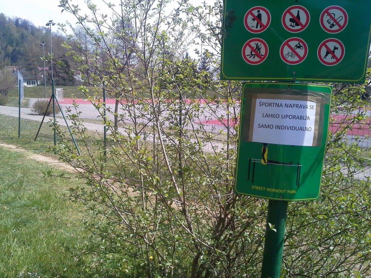 Na športnih napravah in v pasjem parku torej velja, da jih uporabljate posamezno; več uporabnikov hkrati pa le v primeru, ko lahko pri tem upoštevate pravilo ohranjanja varne razdalje.