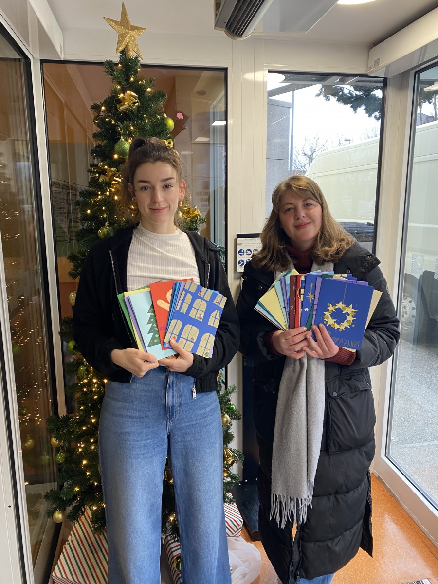 Kljub nekoliko nižji udeležbi v primerjavi s preteklimi leti smo skupaj izdelali 37 prazničnih voščilnic, ki smo jih v ponedeljek, 22. decembra 2025, predali Domu za ostarele Mengeš – enota Trzin.