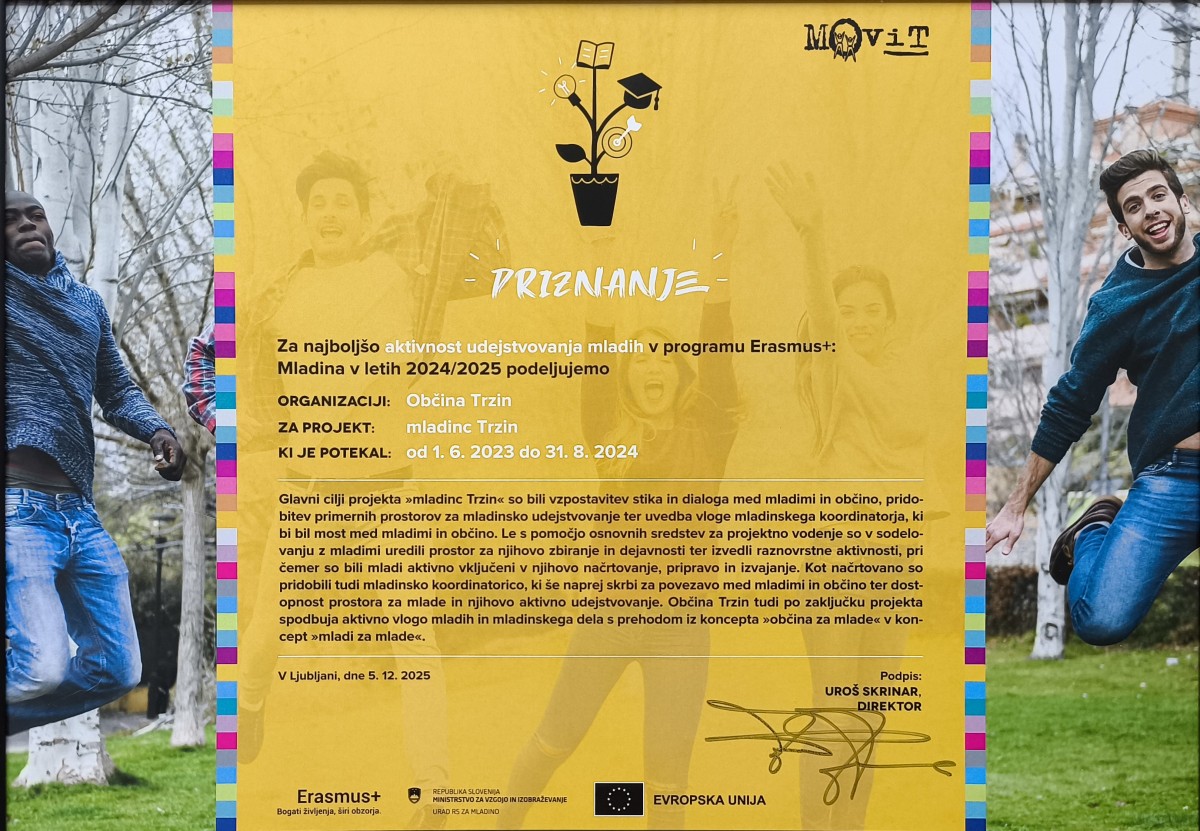 Naš projekt mladinc Trzin se je uvrstil v ožji izbor najboljših projektov, na dogodku pa so bila podeljena priznanja osmim izstopajočim primerom dobrih praks. Projekt Mladinc Trzin je prejel priznanje za najboljšo aktivnost udejstvovanja mladih v programu Erasmus+ Mladina v letih 2024/25, kar predstavlja pomembno priznanje delu mladih ter podpori lokalnega okolja.