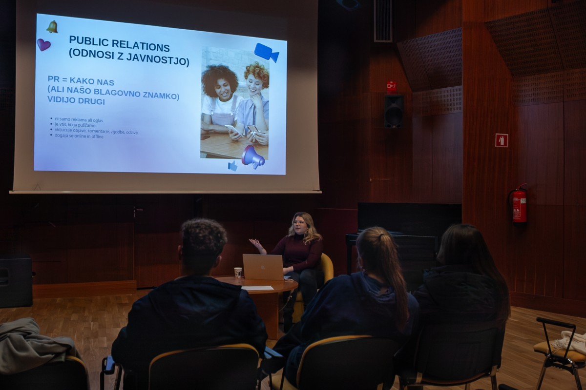 Delavnica je bila namenjena dijakom in študentom, ki želijo družbena omrežja uporabljati premišljeno, odgovorno in strateško. Osrednja tema delavnice je bil PR (odnosi z javnostmi) – kaj PR sploh pomeni, zakaj je pomemben ter kako z dobrim in premišljenim komuniciranjem gradimo svojo podobo, projekt ali dejavnost v digitalnem prostoru. Udeleženci so spoznali primere dobrega in slabega PR-ja ter se pogovarjali o tem, kako lahko z objavami na družbenih omrežjih vplivamo na zaznavo javnosti.